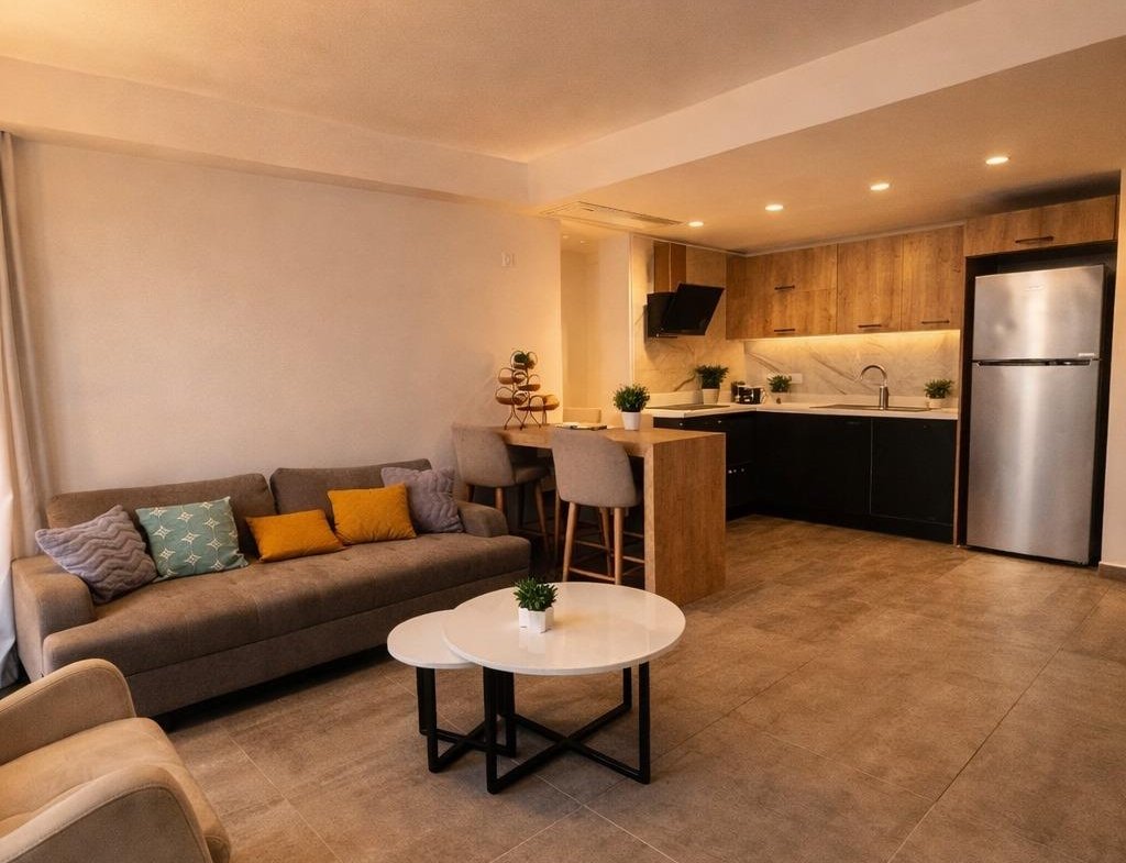 Step into modern comfort on the 1st floor of V Residence, just a short stroll from Girne Harbour and several popular casinos. This bright and airy two-bedroom apartment features a master bedroom with private en-suite, a spacious open-plan living area, and a private balcony — perfect for enjoying the Mediterranean lifestyle. With access to a pool, gym, sauna, secure parking, and elevators, this property combines convenience, style, and lifestyle in one exceptional package.
