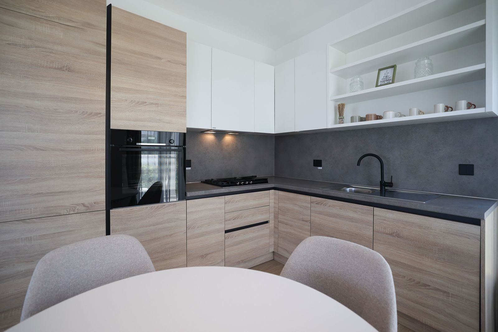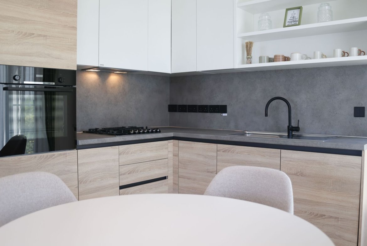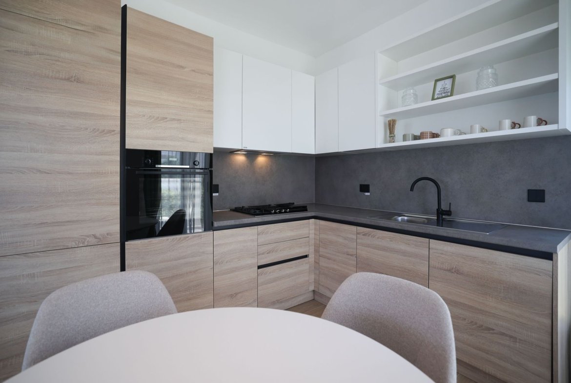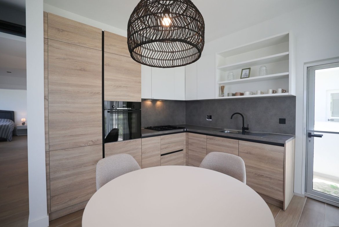 The apartment features an open-plan layout, a private balcony, and access to landscaped communal areas within a secure gated community. Every detail has been thoughtfully considered – from curved architectural lines and natural finishes to a living environment that inspires harmony and balance.